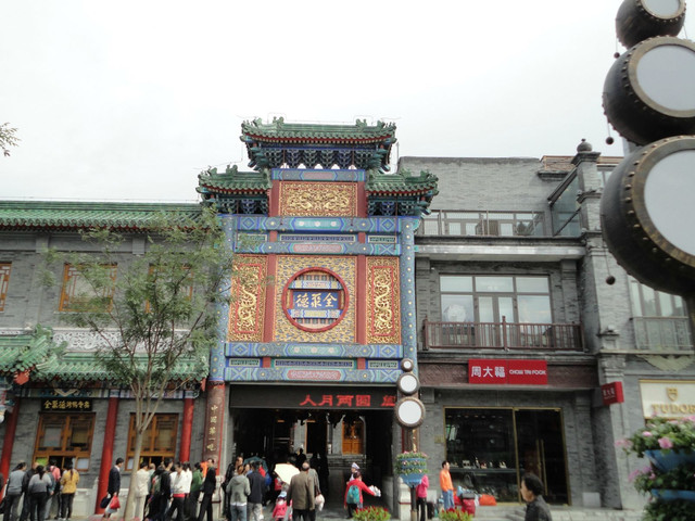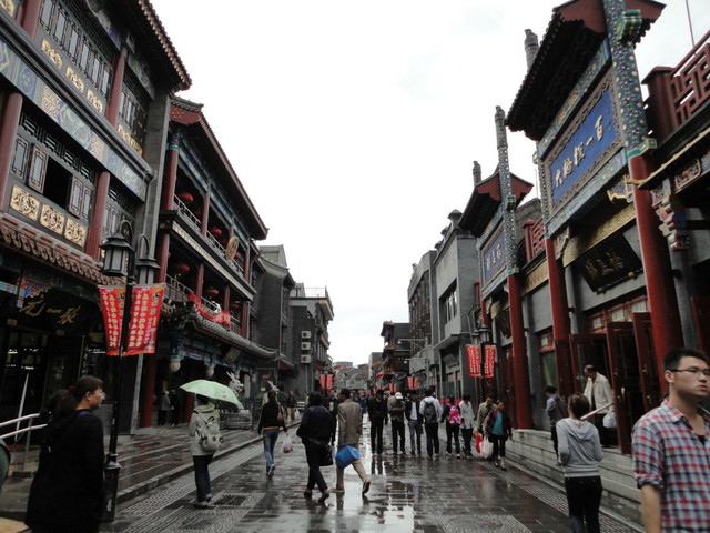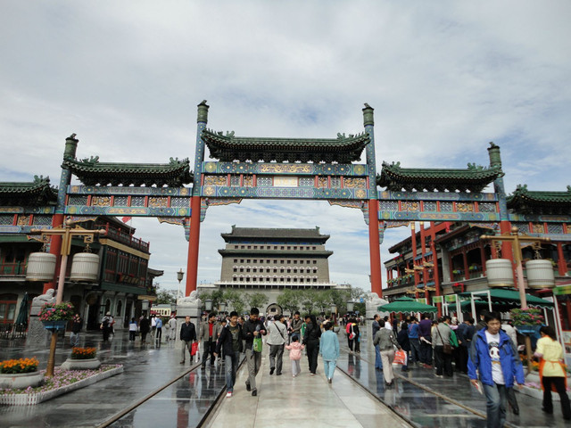 前门大街是北京著名的老牌商业街,位于京城中轴线,北起正阳门箭楼,南至天坛路,与天桥南大街相连。明清以来这里就是皇帝出城赴天坛的地方,因为是帝王将相们的必经之地,以后就逐渐成为一片商业区。前门大街悠久的历史,造就了这里的许多中华老字号,如六必居酱园、同仁堂药店、瑞蚨祥绸布店、长春堂药店、内联升鞋店、张一元茶庄,还有月盛斋的酱肉店、都一处的烧卖店等16处老字号分列道路两侧。悠久的商业文化,老北京的胡同风情在这里一日看尽。