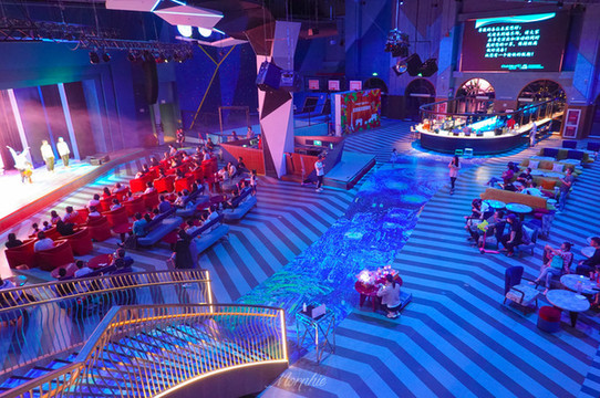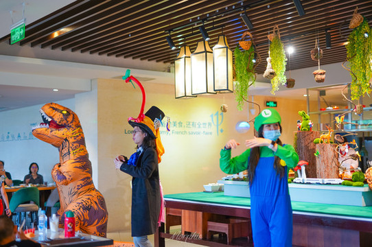 每天晚八点,在“嬉乐场”一层的舞台上,都会上演不同主题的表演秀。周五这晚的主题是 中国 风,舞狮、太极、杂技,孩子们看得津津有味。