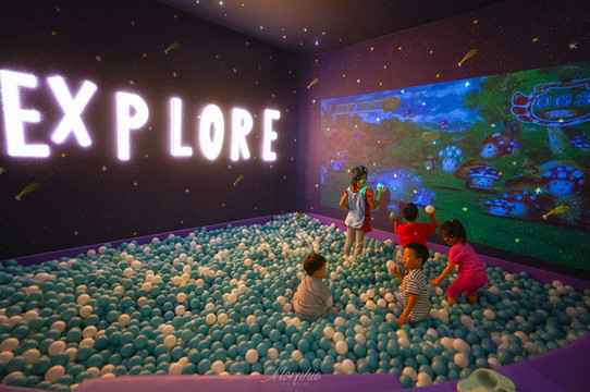 游戏工厂里有很多高科技的互动游戏,互动沙滩、互动足球……两个小朋友最喜欢的就是互动海洋球。用海洋球当“武器”,在投屏到墙壁上的游戏里大显身手。消消乐、打地鼠、 俄罗斯 方块……这样的游戏比在小屏幕上玩起来更过瘾呀~