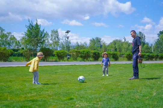 难得能在真正的“绿茵”场上踢足球哦~