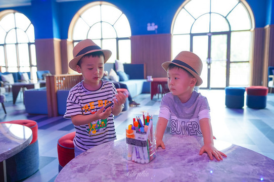 在迷你俱乐部,每天都有不同的主题活动,能让宝贝过的充实而有意义。海绵池、迷你蹦床、海洋球池及滑梯、迷你城堡……各种玩乐设施应有尽有。还有可以体验家庭烹饪课程的厨房教室,这个需要看酒店的通知。Summer还和哥哥姐姐们一起,在G.O大姐姐的引导下,玩了一场有趣的纸牌游戏。