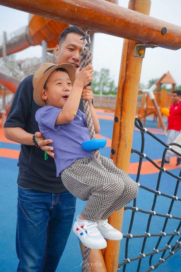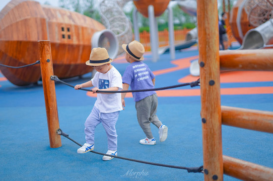 和风拂面时,徜徉在户外游乐场的童真乐园