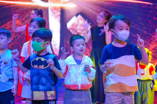 表演结束了,全场的孩子们还被叫上舞台,跟着演员的动作一起跳舞。