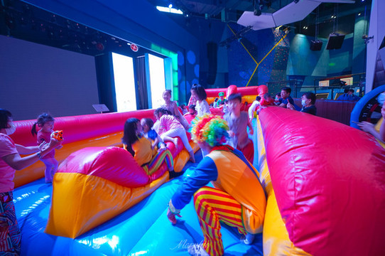 各种充气游乐设施布满场地,G.O此时纷纷化身充满节日气氛的卡通人物,真的有一种自己也回到童年的感觉。