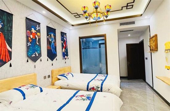 客房8间共8种主题:网红ins风、怀旧民族风、新中式古典风、日式榻榻米、雅致荷花居、仿古主人卧、公主星空房、地中海星空房。