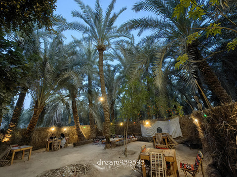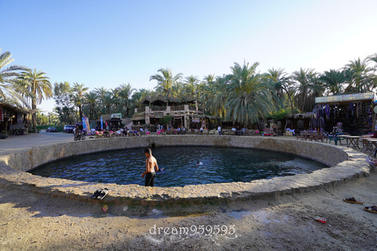 远处满满的都是椰枣树,这就是神奇的沙漠绿洲。