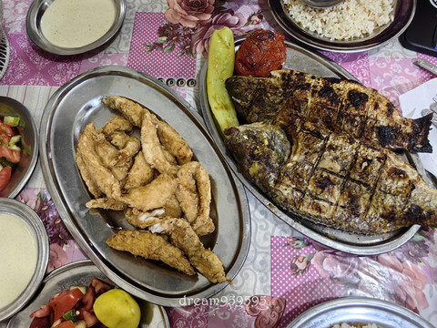 点了烤鱼和炸鱼,都很好吃。