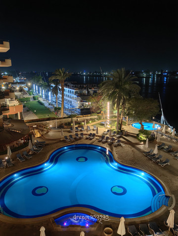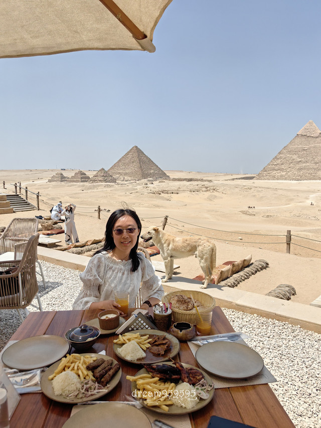 酒店不错的,晚上顶楼露台上能看到金字塔的灯光。