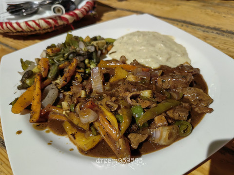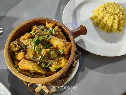 点了塔吉锅牛肉和烤鱼,味道确实不错。