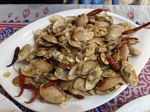 午餐找了个当地的中国人帮忙买了海鲜加烹饪,因为埃及餐厅的速度太慢了,而且烹饪方式只有两种烤和炸,毕竟考虑到新鲜的海鲜有的还是白灼更好吃。老板青岛人,很会挑海鲜,佛系接客,店里还挂着毛主席像。