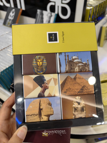 【伴手礼】纸莎草画、香精瓶、贝壳首饰盒、Patchi巧克力、Abu Auf饼干等零食、埃及棉制品。