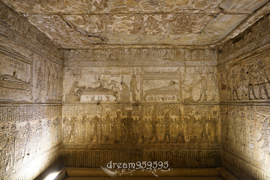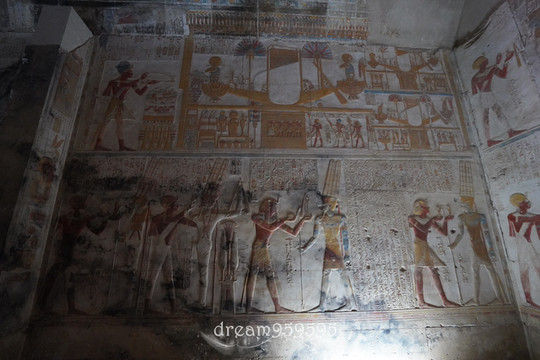 古埃及奥西里斯唯一的崇拜中心只有Abydos,因为这里是奥西里斯头颅的埋葬处。塞提一世神庙是Abydos唯一修复开放的,颜色保存得很好。