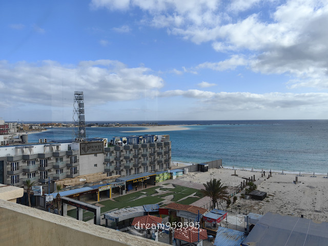 马特鲁的一家酒店,1200埃镑,正面海景房,阳台上就能看大海,当然房间不咋地,胜在性价比高,还有早餐。