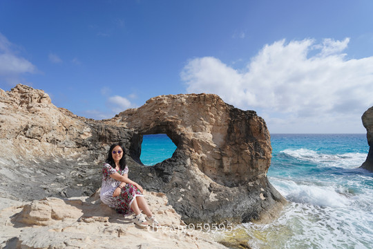 石头当中有个洞,像眼睛一样,没有能力像很多博主一样爬到洞里面去,远处拍一下得了。