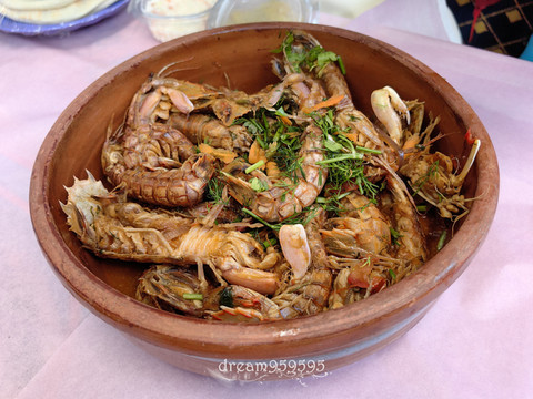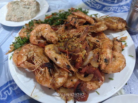 塞得港的海鲜真的值得冲,80埃镑约等于12元人民币一公斤的皮皮虾都有黄,烤鳗鱼鲜嫩肥美,比在马特鲁的更棒。还买了大虾和墨鱼,吃爽了。