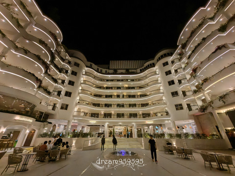 有泳池、餐厅、休息区域,很大,内部摆设弄得很漂亮。