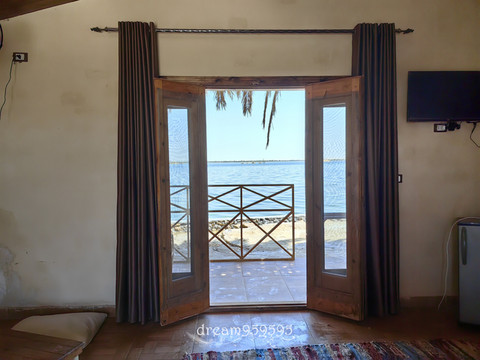房间都是一栋栋分开的,推开窗户就是盐湖,但是那个盐湖不能把人飘起来,含盐量不够。