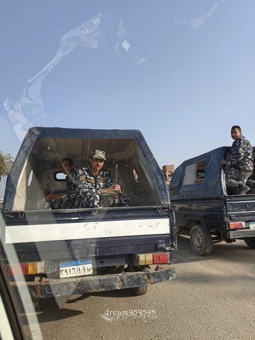 回去继续开土路被警察制止,然后警车接力开道护送了很久到大路上,以为这下肯定要被敲诈了,没想到挺友好的,只碰到一个接力的警察试图要小费的,但是看到同僚过来之后也就不好意思了。中途加个油,偶遇警察又开始护送到卢克索,搞不懂这到底是个什么操作。