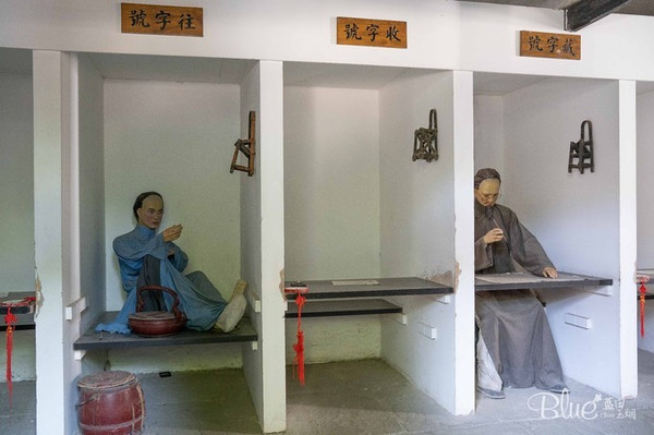 这里还原以前考生考试的地方,板子分开就是桌子,合在一起就是床铺,得在里面住几天考试,颇为辛苦。