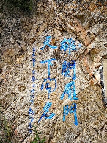 “壮观”两字是李白题写,多一个点,有人说是意犹未尽,我看就是任性。