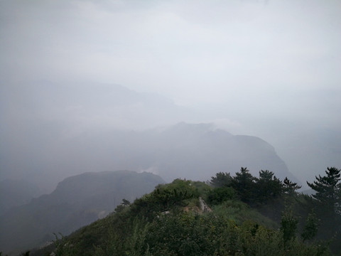 已经基本爬到山顶了,顺着往上再走一点就是恒顶了,可是山顶狂风暴雨大作,雨伞根本撑不住,收伞后瞬间湿身,寒冷刺骨,想到没有必要与大自然风雨作斗争,立马转身下山,应该留遗憾了。可是询问了爬到恒顶的人,山顶只有一个标注恒山海拔的碑,连个亭子也没有,都后悔了。