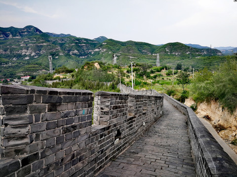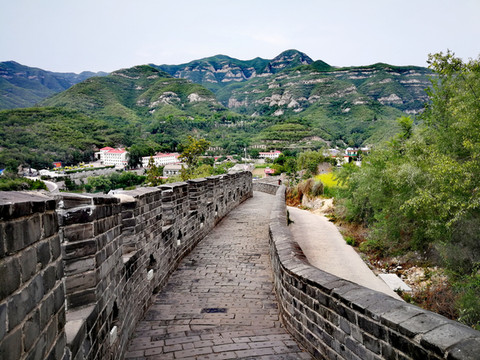 娘子关的城堡,背依高接云天的嵯峨绵山,面临涧壁如削的万丈深峪,山腰的垣堞,随山势蜿蜒,桃河环绕其西北,曲折奔流,真是“襟山带水,金城汤池”,整个关城两翼是依山势蜿蜒起伏的长城,这里的长城,历史上成为山西、河北两省间的天然屏障,确有“一夫当关,万夫莫开”的气势,十分险要。