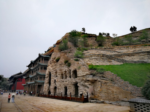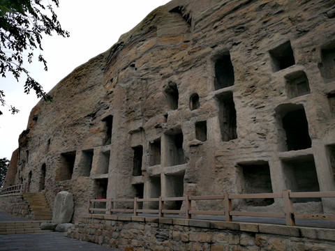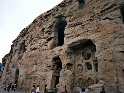位于大同市西郊17公里处的武周山南麓,石窟依山开凿,东西绵延1公里,距今已有1500年历史。石窟的开凿从北魏始,一直延续到明朝,前后60多年。存有主要洞窟45个,大小窟龛252个,石雕造像51000余躯,为中国规模最大的古代石窟群之一。在这绵延一公里的石雕群中,雕像大至十几米,小至几公分,巨石横亘,石雕林立,蔚为大观。