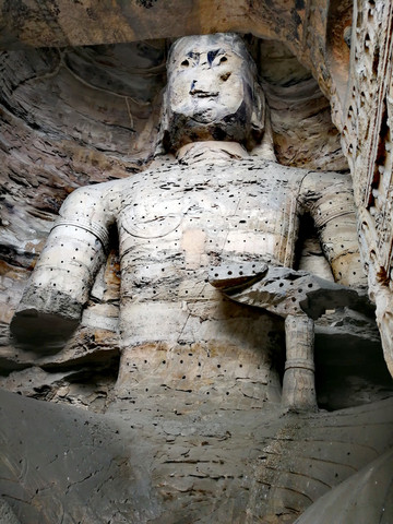 这时候,一个僧侣进入了继承太武帝皇位的文成帝视野,他叫昙曜。据说一次文成帝的车队走着走着,一匹马停下来咬住了在路边的昙曜的衣服,这叫“马识善人”。垂询之下,文成帝也发现昙曜确是有道高僧。得到文成帝支持的昙曜,有感于太武帝灭佛时期佛教寺庙建筑等被大量破坏的状况,决心效仿西域,开凿石窟——历史证明昙曜的想法不无道理,后来有很多人想破坏云冈石窟的佛像,但最多也只是做到了局部破坏。