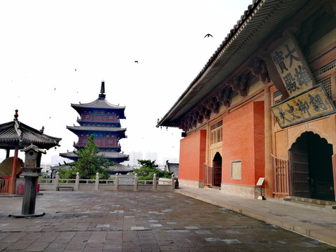 俗称白塔,位于代县城内古城圆果寺内,与边靖楼遥相对峙。