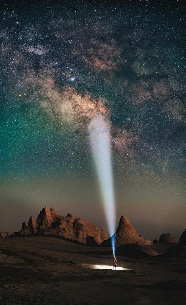 这是摄影爱好者创作的星空作品,挺美!问题是住在哪里呢?你可以选择安营扎寨在这荒凉的星空下,可爱的司机师傅会准备一些户外用品,大家如果想体验一下的话可以提前告诉司机师傅,也可以提前准备点零食酒水,最好能有一堆篝火,再来一个小音响,试试,要不要太爽呢 !
