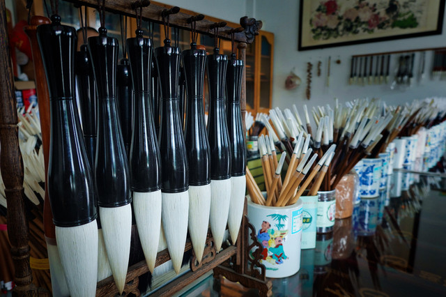 撰写于明孝宗弘治年间的《弘治湖州府志》记载道,“湖州出笔,工遍海内,制笔者皆湖人,其地名善琏村……”,漫步小镇,随处可见制笔的作坊和工匠。