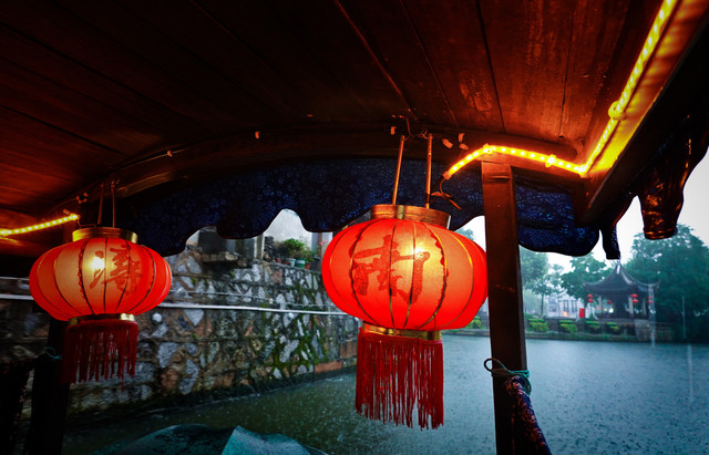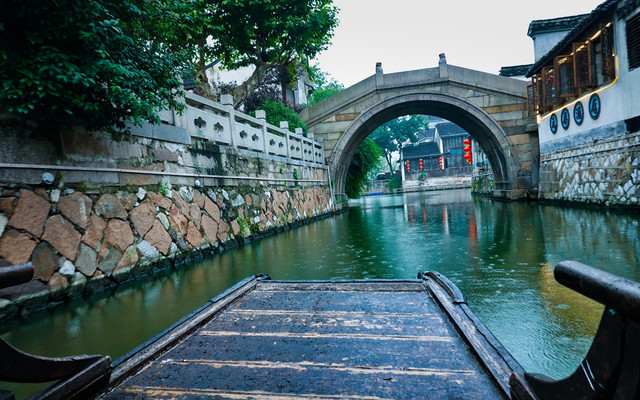 除了各具特色的建筑,在南浔还有一项不得不体验的特色项目,那就是摇橹船。百余元就能包一艘小船,可以乘坐八人,一路顺流而下,穿镇而过,还能驶入京杭大运河,穿越回旧时光。特别推荐在傍晚的时候乘坐,晚风清凉,华灯渐上,夜色下的南浔古镇会呈现出一番特别的韵味。