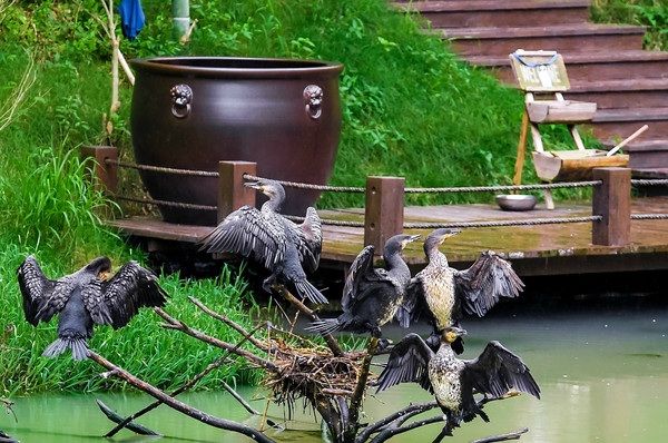 虽然说它们长得并不是十分讨喜,黑色的羽毛,锐钩状的尖嘴,鸭掌般的双脚,乍一眼看上去与可爱一点儿也搭不上边,但是却一个个都是捕鱼的高手。现在它们正站在湖面上俯视着水中的一切,一旦发现鱼儿的踪迹,绝不可能放过一条漏网之鱼。
