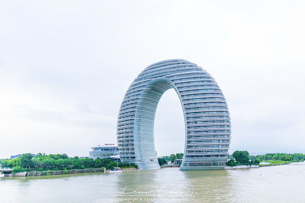 我们的第二站,就来到了月亮广场。“太湖生明月,奇观共欣赏”来自太湖水陆之间的月亮湾酒店,形状与弯月相似,状若指环,完全可以与迪拜的帆船酒店相媲美。酒店分为地上23层,地下两层,高101.2米,宽116米,几近全玉石整修,显示出了它的奢华和雍容。每到晚上,这里让人叹为观止的璀璨灯光又是另一番迷人景象,引人入胜,是中国顶级奢侈酒店的标杆。