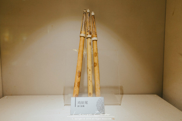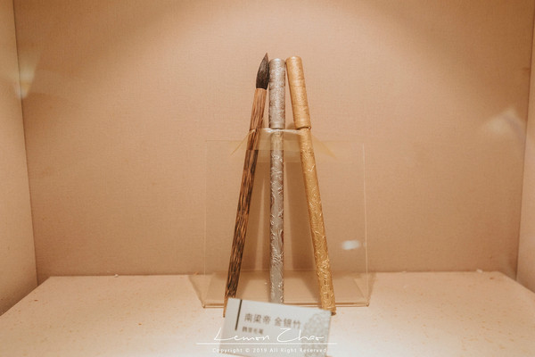 第二展厅则侧重展示的是毛笔的起源。据说毛笔在五六千年以前就已经出现了,商代甲骨文的图案、青铜器上的金文,都好似用毛笔所撰写的。