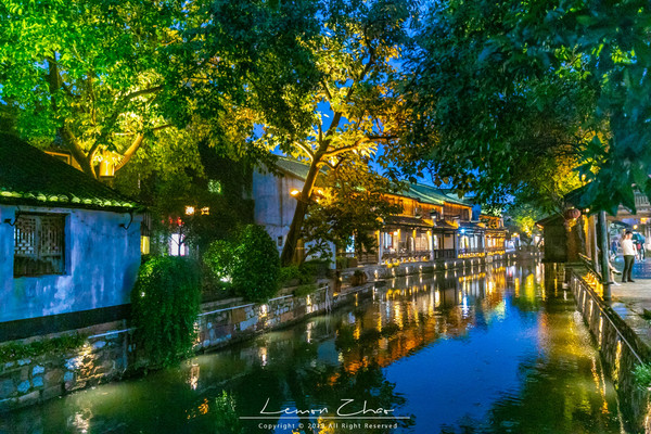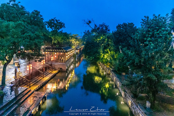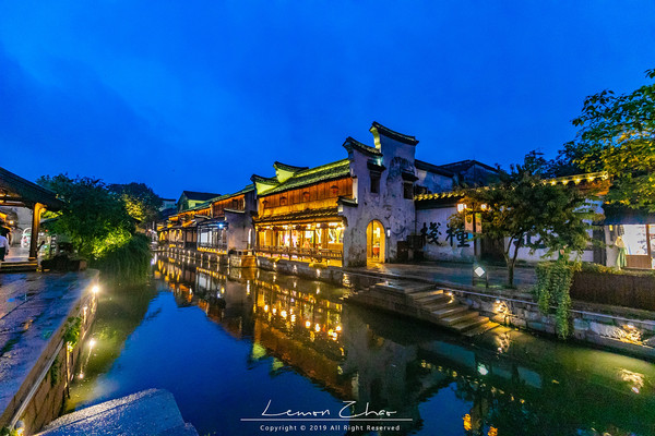 虽说没有坐上夜游的观光游轮,但是我们的夜晚绝对不仅仅于此,属于这人间的绚烂多彩才刚刚开始。我们来到了位于长兴县太湖龙之梦乐园的太湖古镇,这里的夜晚即将上演一场盛大的水舞表演,美轮美奂的灯光水秀搭配绝美半弧形夜景,点燃了这南太湖的夜空。