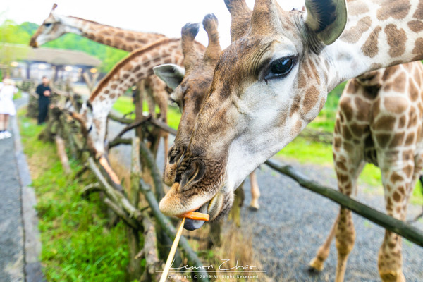 在这里的管理员手里可以花上30元买上一筐胡萝卜喂长颈鹿哦,能不能和长颈鹿有个零距离接触就全指望这筐胡萝卜了。没想到这些长颈鹿各个都是小吃货,看着我手里拿着的柳枝就知道有吃的了,我走到哪儿几只贪吃的小家伙就跟到哪儿,甚至我还没有拿出胡萝卜呢,就已经把头探下来撒娇想要吃胡萝卜了,也太萌了吧。