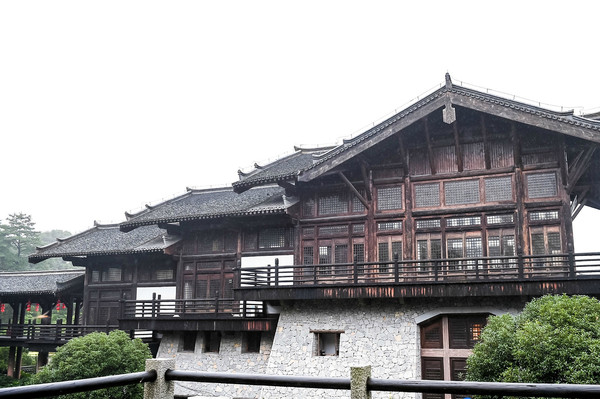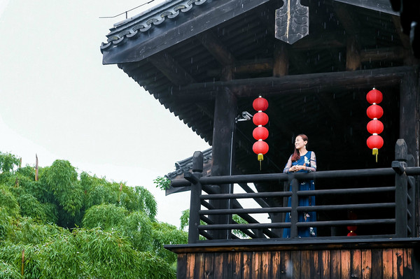 站在这儿凭栏四望,远处层峦叠嶂, 层层掩映间百年古寺若隐若现。烟雨朦胧,万竿修竹,一派苍翠,茶树茶垄,掩映其间。站在最高层,心胸都瞬间开阔了不少,深吸一口气,能够感受到这浓浓的紫笋茶的清香,在这群山环抱之中,整个贡茶院宛若遗世而独立,成为这世外的桃花源。