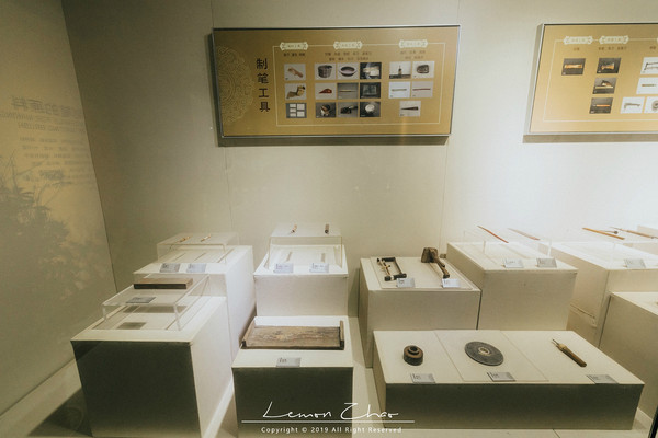第三展厅,也是我最为喜欢的,那就是天工技艺甲天下,主要讲述湖笔的制作工艺及材料工具的展示。原来这一支小小的毛笔,要经过笔料、水盆、结头、蒲墩、装套、镶嵌、择笔、刻字共八大工序及120多道小工序。是不是难以想象,几块钱就能买到的毛笔,竟然需要这么复杂的工序?