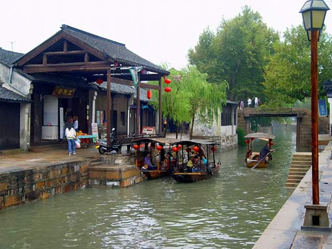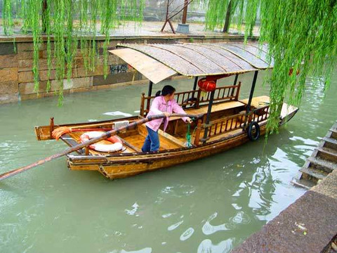 从小莲庄出来后顺着河道向北走就是民俗风情区了。河道内依然是时断时续往返的乌蓬船。不过这里好像摇橹的女子为之不少。随着她们身体的摆动加之富有节奏的摇橹姿态,挂着红灯笼的小船在河中游弋,构成了南浔水乡的一道独特风景线。