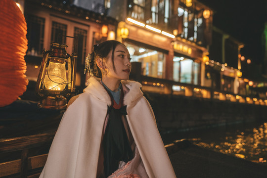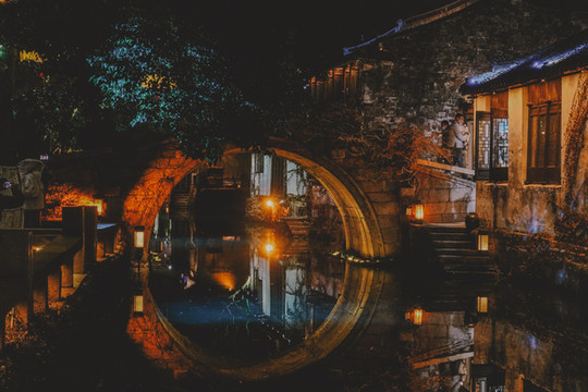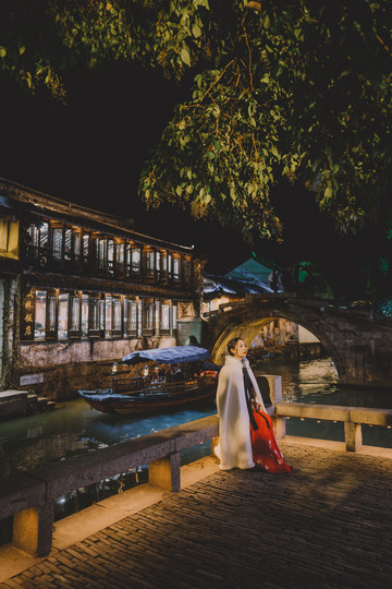 白天体验了水上财道的游船,晚上也不要错过周庄的手摇船夜游。船夫阿婆亲切和蔼的招呼我们上船,把船头的煤油灯都点亮了,然后拿着船桨带我们穿行在光影流动的水巷里,换个角度欣赏周庄的迷人夜景。