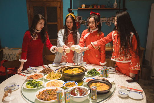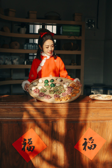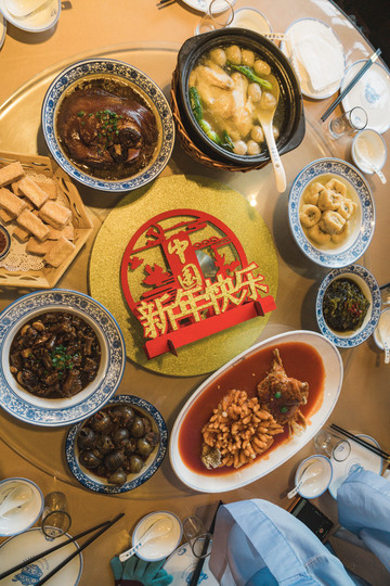 整个团圆宴套餐有12道菜,外加一份甜甜蜜蜜的水果圆子羹和新年糖果盘,每道菜都有个吉祥的祝福语,另外,预定这样一桌团圆饭还可以赠送4张周庄景区的通用门票哦。
