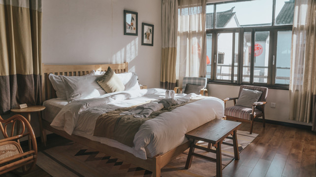 客栈的房间非常干净舒适,窗户看出去也能看到一些水乡古镇的景象。