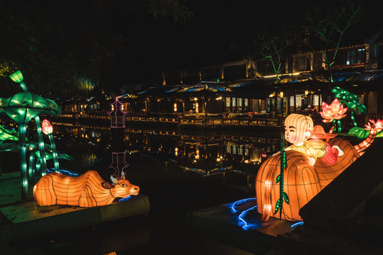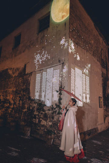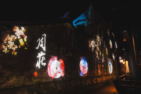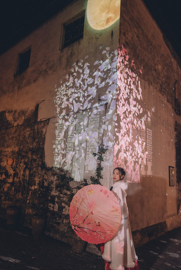 另外,周庄古镇在福洪桥到贞丰桥段那边打造了一个非常唯美的灯光秀区,主题是花巷雨巷,用专业的光影装置和互动新媒介融合的手段,以全新有创意的方式点亮周庄。