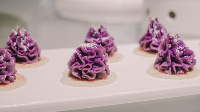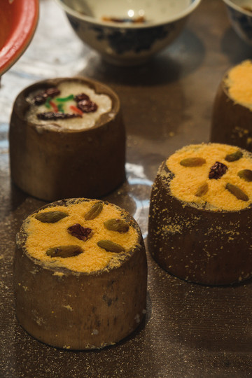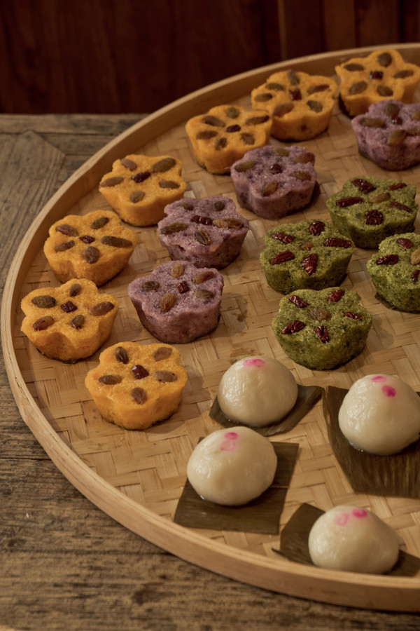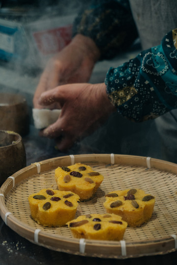 我们即将做的是南瓜梅花糕,阿婆教我们和面,加入南瓜粉,然后装到模具里,放在高压锅的盖子上用蒸汽蒸熟,再从模具里倒出来,迫不及待尝上一口,软软糯糯还带有南瓜的清甜,真的是冬日里最温暖的事物了。