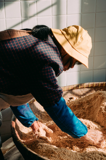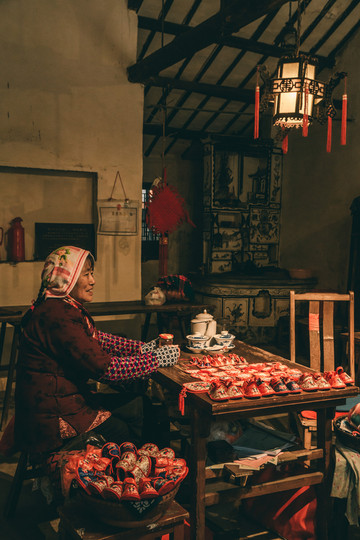 伴随着夕阳,我们探访了“贞丰文化街”,文化街以“贞丰十二坊”为代表,十二坊是指铁铺坊、鞋艺坊、竹编坊、刻雕坊、酒作坊、土布坊、砖瓦坊、锦缂堂、苏绣坊、豆腐坊和面人坊。坊里的手艺人基本都是上了年纪的阿公阿婆,他们认认真真兢兢业业几十年就为了一门手艺,匠人精神大概就是形容他们这样的吧。