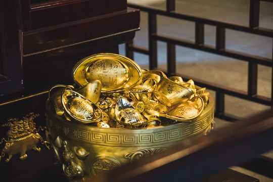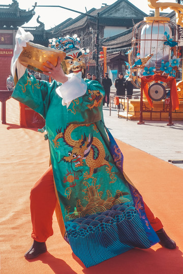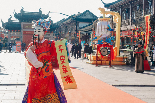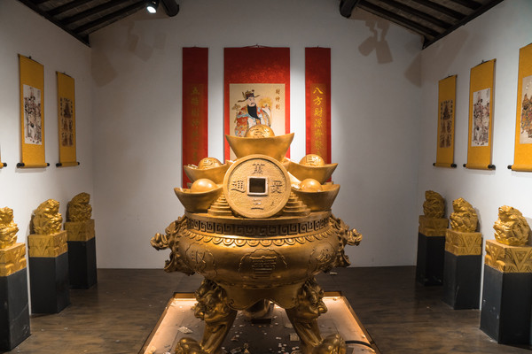 水上财道一路开往财神居,下船后要走过满地铜钱的铜钱路,然后“钻”过巨大的铜钱钱眼,接着瞻仰沈万三、礼拜财神许下心愿,希望来年都能“掉”钱眼里。