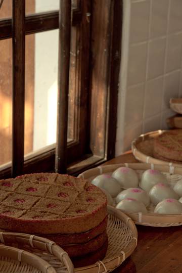 早早预约了下午的糕点制作体验,远远就看见香村糕点店里的阿婆在忙碌准备着材料,等我们过去体验。