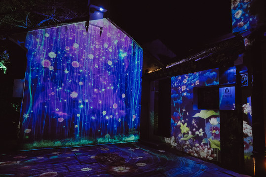 花巷则是一条“铺满”了鲜花的花路,在影像投射下,各种颜色的花朵在地面上一起绽放,撑一把油纸伞,慢慢走在这条花路上吧。
