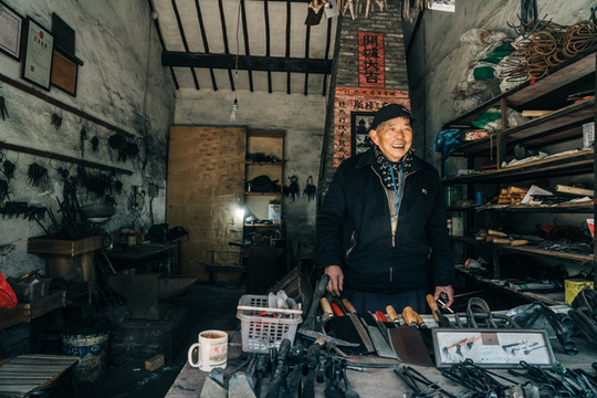 和铁铺坊的爷爷聊了会天,他说他这一辈子就是在打铁,他非常热爱这个手艺,虽然铁是冰冷的,但只要触摸到它,爷爷的心就是热的。